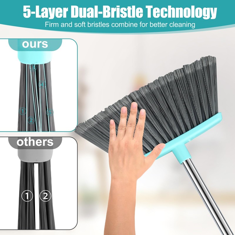 - Heavy duty Broom Bristles: This broom and dustpan set comes with unique 5 layers of high quality bristles, which cleans the floor more efficiently. Suitable for indoor and outdoor use, for tile floors, garage floors, and hardwood floor.