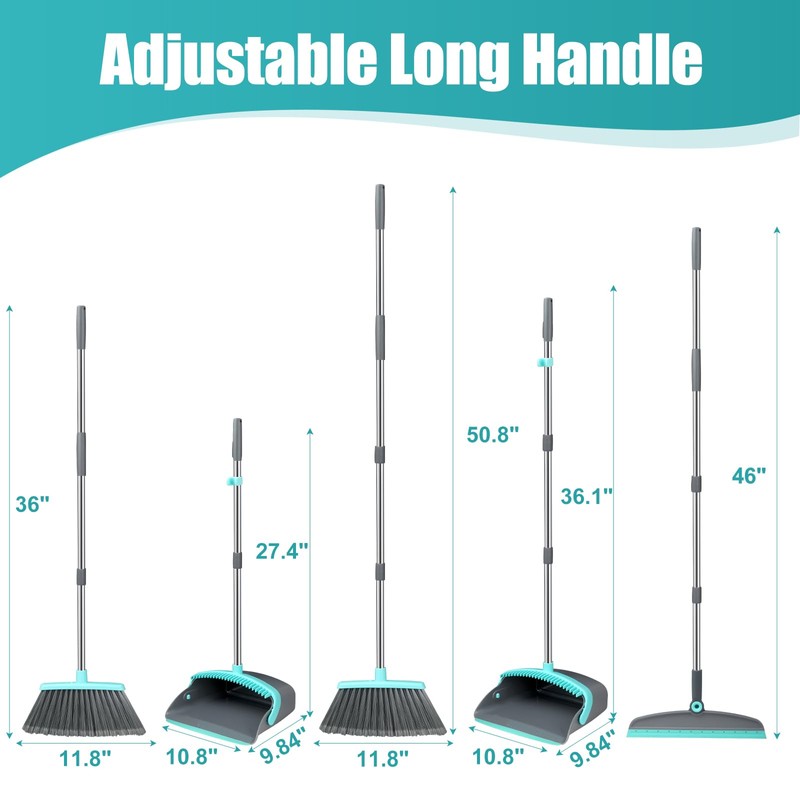 - Extendable Pole Design: The broom's length is adjustable, you can choose the length of the broom according to your choice, and the broom with the longest reach is 51 inches, making it easy to use without having to bend down.