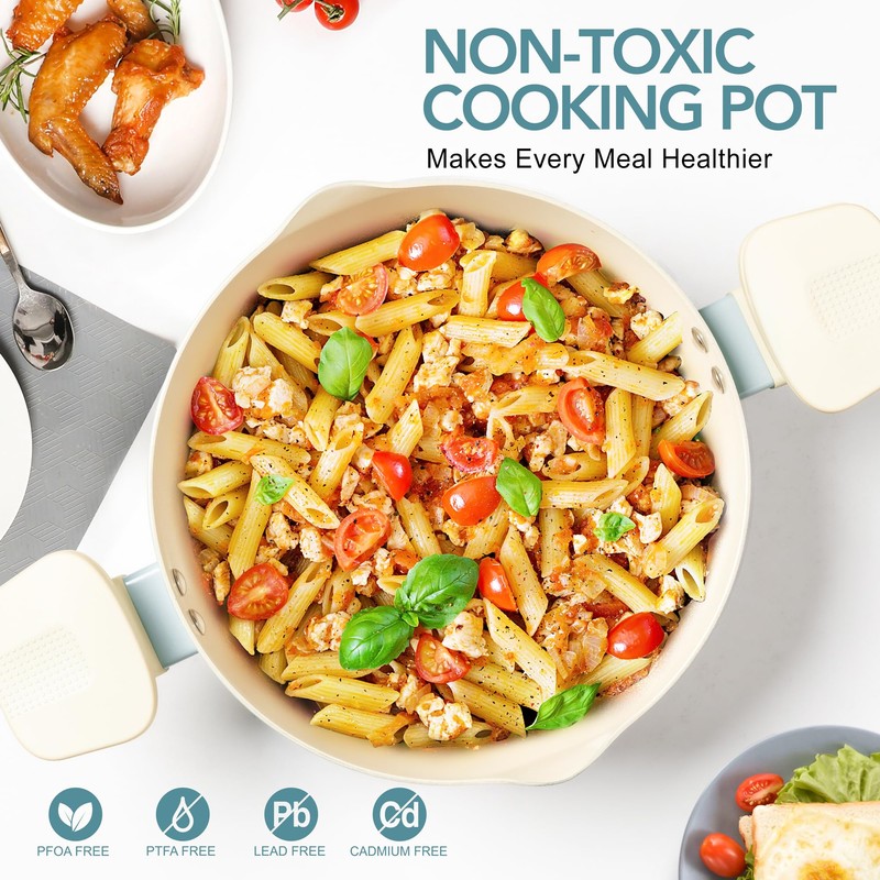 - Toxic-Free Ceramic Nonstick Pot – Eco-friendly ceramic coating resists scratches, avoids chemical fumes. Food slides off effortlessly—5x easier cleaning.