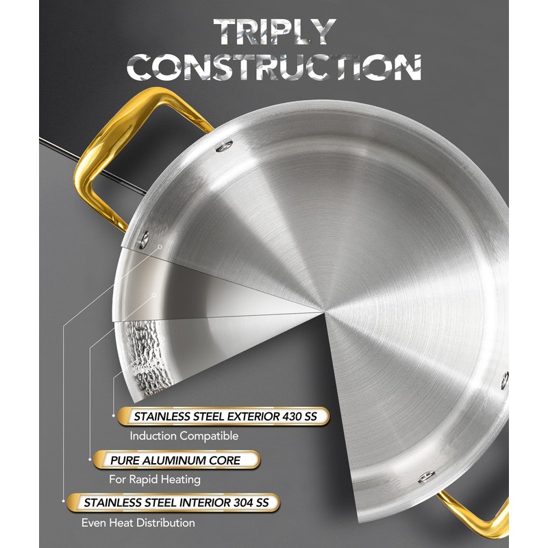 • *STYLISH HAMMERED DESIGN WITH GOLD ACCENTS* The hammered texture hides scratches and adds elegant charm, while gold-tone handles elevate your kitchen aesthetics. Perfect for serving directly at the table, ideal for dinner parties, Instagram-worthy meals, or luxury housewarming gifts.