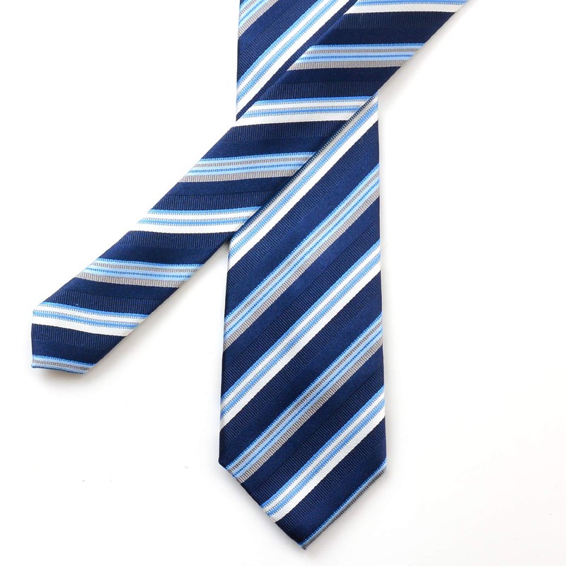 Michi Kolondon Brand Necktie, 100% Silk, Jacquard Woven Stripe, B Pattern: Navy
