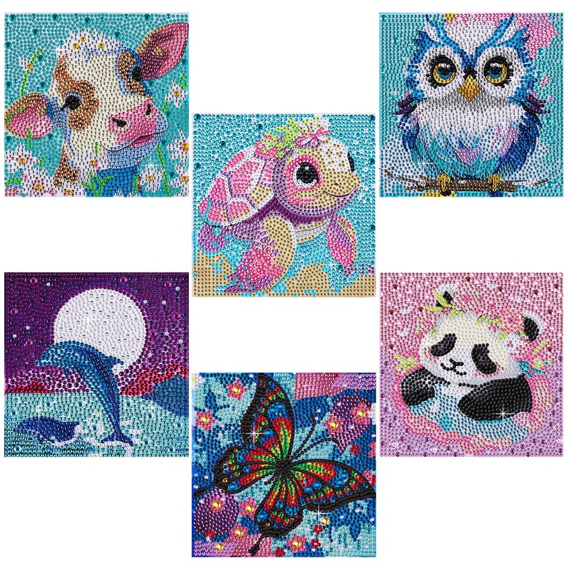 MICHIHOMIE 6 Pack Diamond Painting Kits for Kids, Cute Cartoon Animal Gem Art Kits, 6x6 Inch Full Drill Art Diamond Painting for Girls, Boys, Beginners
