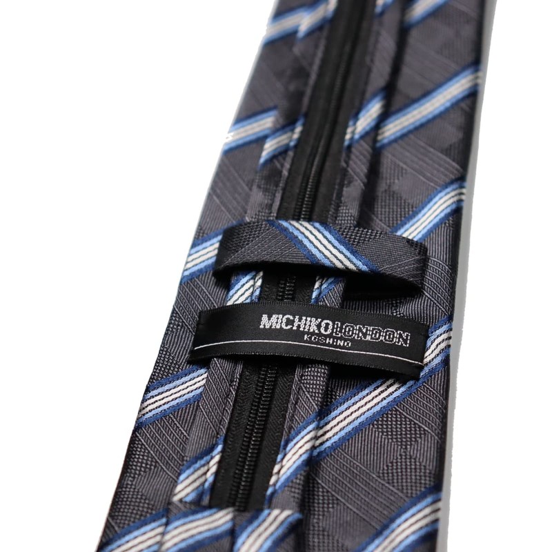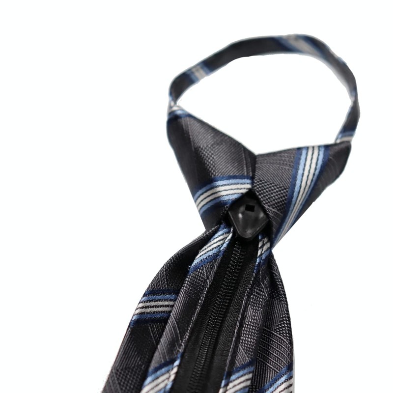 Michiko Korondon MKZP-1-C One-Touch Necktie Brand, Striped Pattern, Gift, Stylish, Silk Blend, Zipper Tie, No Tie, Easy to Wear Necktie, Gray, gray