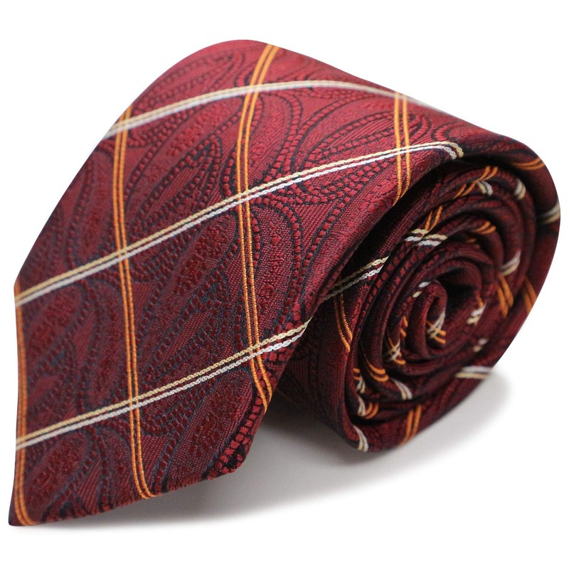MICHIKO LONDON Brand Necktie, Made in Japan, 100% Silk, Jacquard Woven Pattern, Paisley, Pattern A: Wine