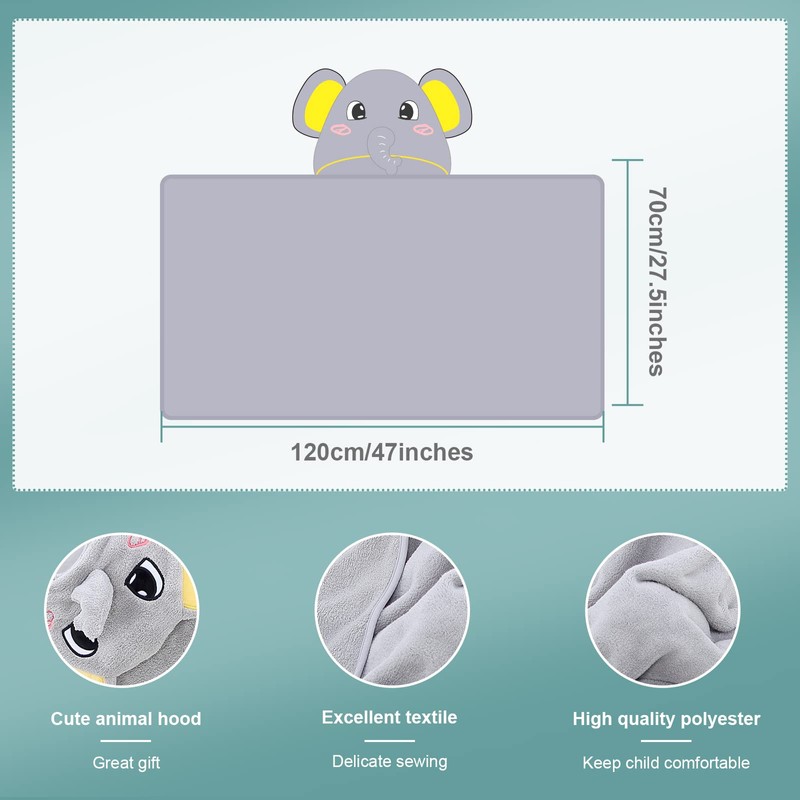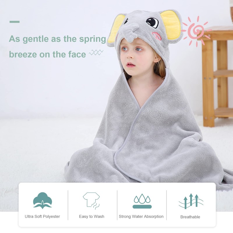 MICHLEY Cartoon Hooded Baby Towel Unisex, Premium Soft Swimming Bathrobe Large Washcloths 27.5" x 47" for 0-7T (Elephant)