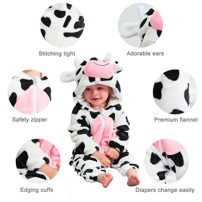MICHLEY Unisex Baby Boy Girl Hooded Romper Winter Animal Cosplay Jumpsuit Outfit, Cow, 24-30months, Size 110