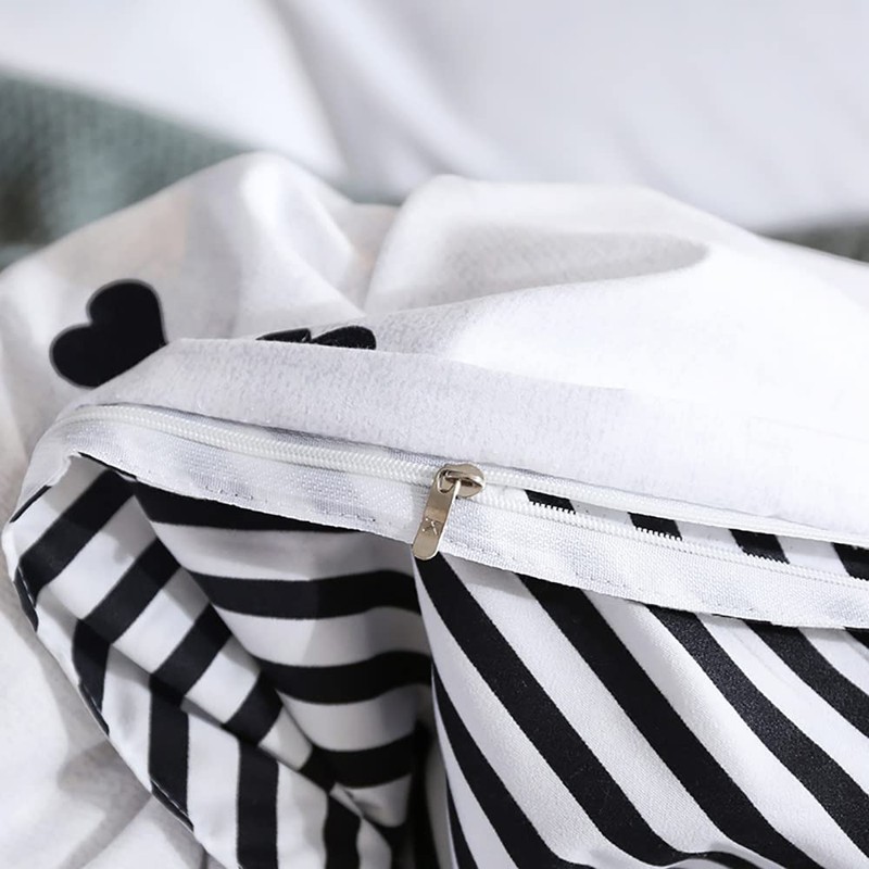 - Design: Modern black and white heart-shaped pattern bedding set, with black striped on back side, fine craftsmanship, simple design, good match with your bedroom decoration, suitable for summer and all seasons.