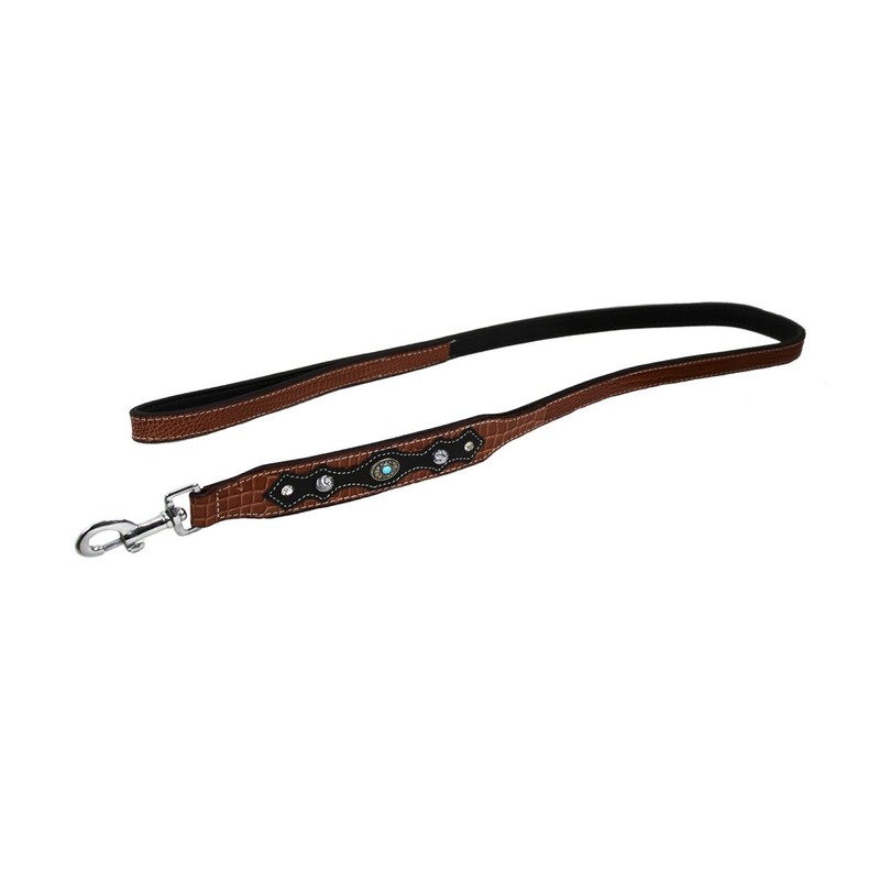 - Michur Lakota a soft and strong leather dog lead for dogs. The model: Lakota brown with blue appliqués. The leather dog lead has a total length of 150 cm with a width of 2.5 cm. A matching Michur collar is sold separately.