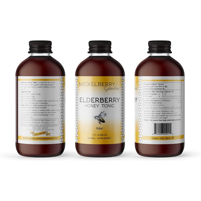 Mickelberry Gardens Elderberry Honey Tonic is a blend of raw honey, raw apple