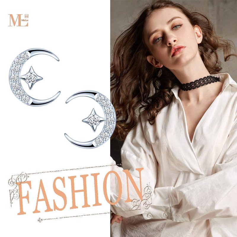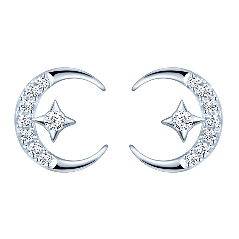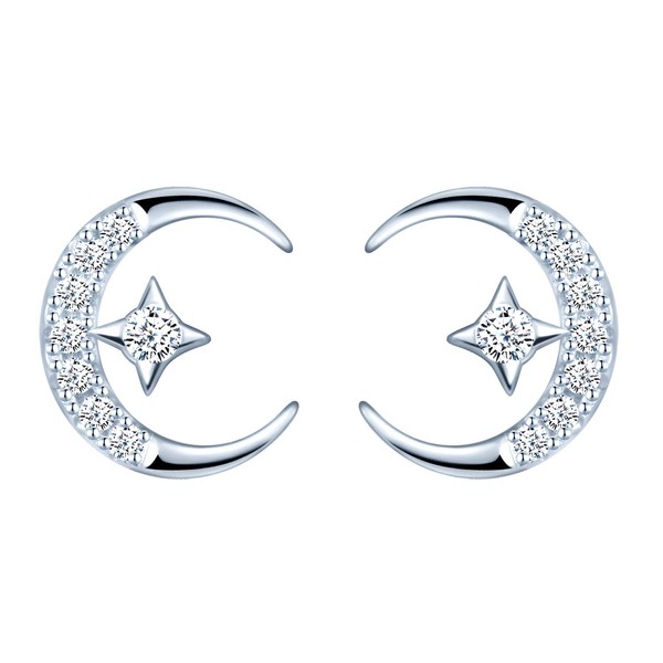 MicLee Fashionable Women's Earrings 925 Sterling Silver Cubic Zirconia Stud Earrings Moon & Stars Stud Earrings with Gift Bag Super Christmas Gift, Silver Cubic Zirconia, Cubic Zirconia