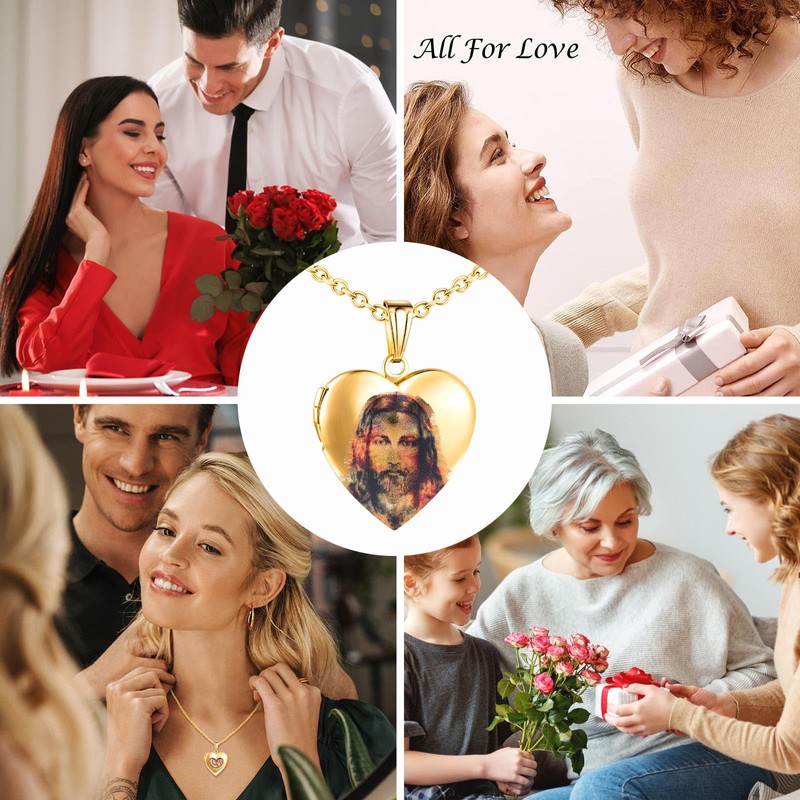- GESTALTUNGSKONZEPT: Um Ihren Glauben auszudrücken! Der Herz-Anhänger zeigt die Figur von Jesus, mit Herrlichkeit Farben. Sie können Foto in das Medaillon setzen, für Liebe und Segen. Diese einzigartige religiöse Herz Medaillon Halskette ist einfach und elegant, geeignet für jeden Anlass als tägliches Tragen, zu Hause und im Büro.