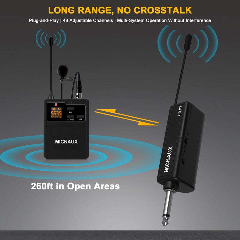 MICNAUX Wireless Lapel Microphone System with Headset & Lavalier Mics, UHF Bodypack Transmitters, Mini Rechargeable Receiver, 48 Channels in 500MHz, 260ft Range, Plug & Play for Wedding Speech Church
