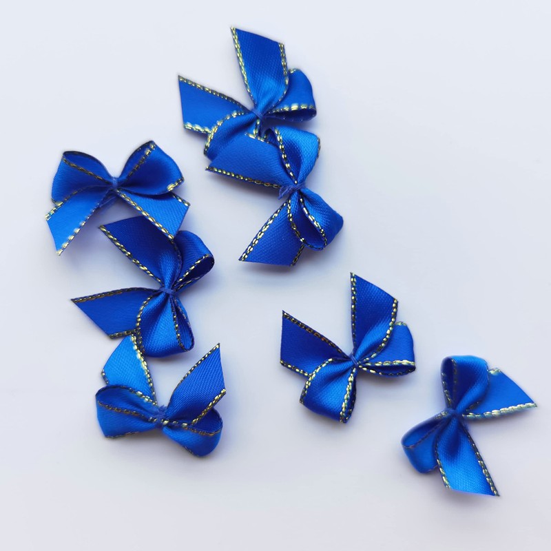- Embalaje: 50 unidades, cinta de satén, borde metálico, color azul, lazo para manualidades o decoración navideña