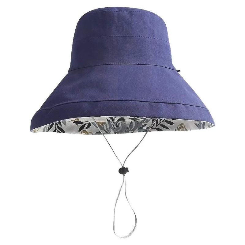 Micoop Women's Linen Cotton UPF 50+ Sun Hat Reversible Bucket Hat with Wide Fold-Up Brim and Chin Strap (Dark Blue)