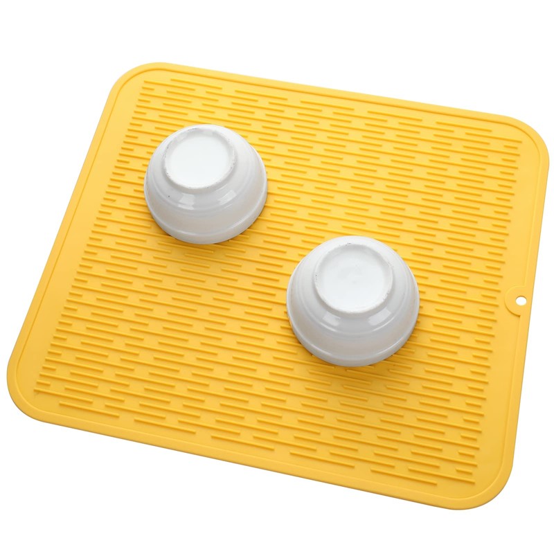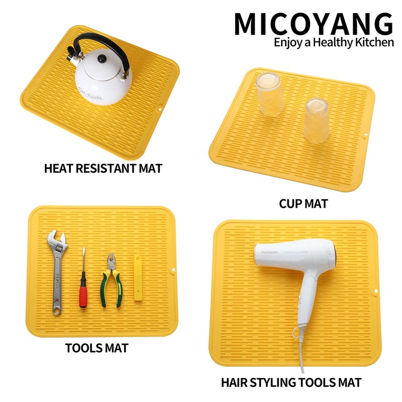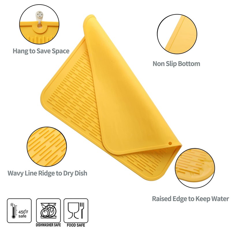 MicoYang Silicone Dish Drying Mat for Multiple Usage,Easy clean,Eco-friendly,Heat-resistant Silicone Mat for Kitchen Counter or Sink,Refrigerator or Drawer Liner Yellow XL 18 inches x 16 inches