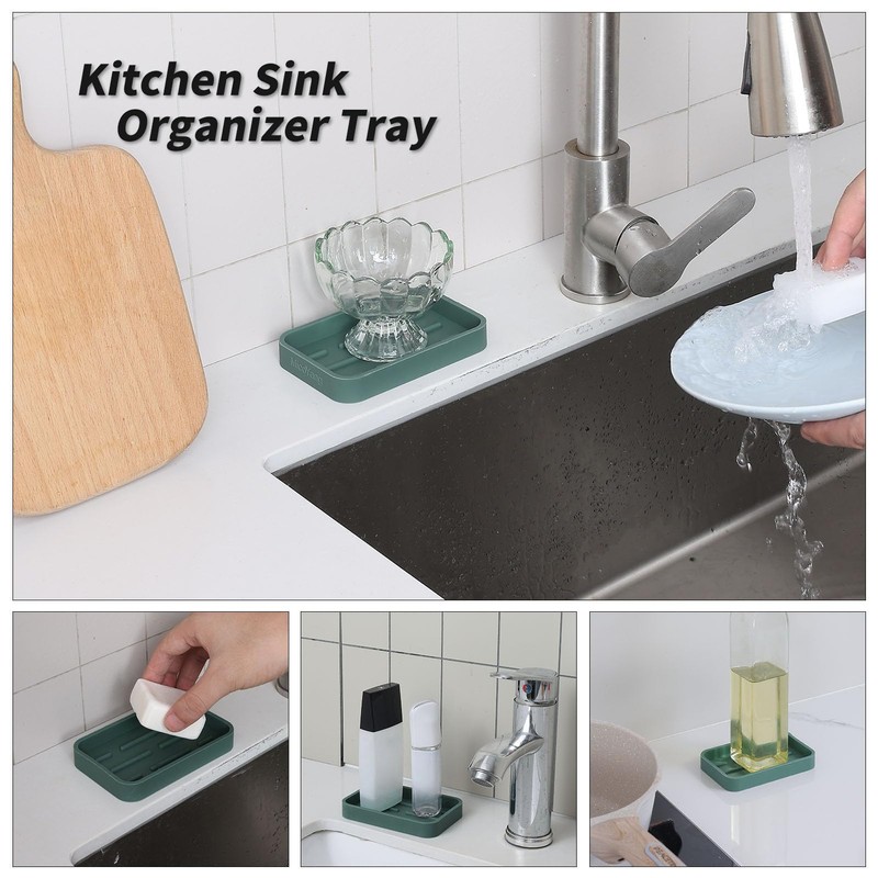 - MULTIPLE USAGE: Micoyang Silicone Kitchen Sink Organizer Tray can be used on kitchen or bathroom sinks, counters,used as soap and sponges holder,as a organizer tray for dish soap dispenser, scrubber,shampoo bottles,brushing cup.You can even use it as coffee mat, dish drying mat for glasses, organizer tray for oil dispensing bottles and salt shakers,organizer tray for succulents and other plants