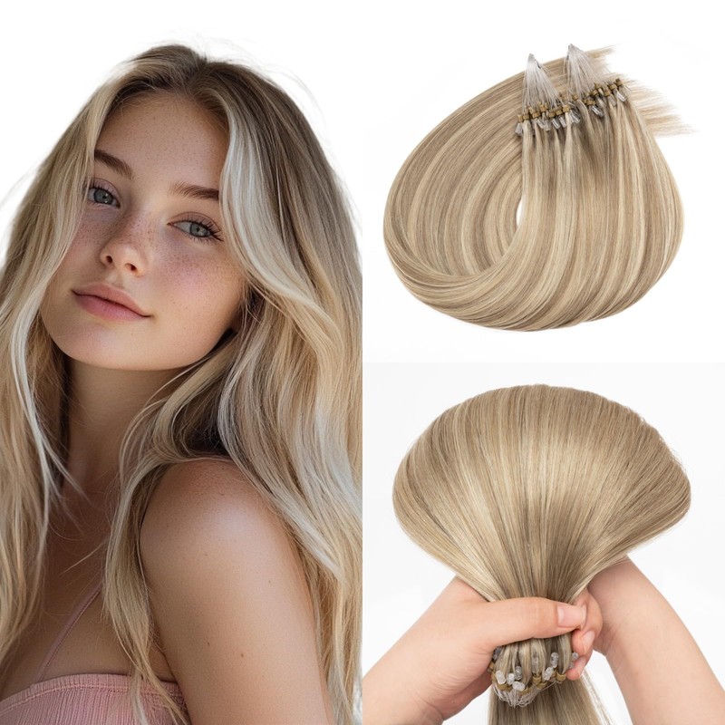 Micro Beads Hair Extensions Human Hair 24 Inch Blalayage Blonde with Golden Blonde Micro Ring Hair Extension Microlink Hair Extensions 1g/s 50g