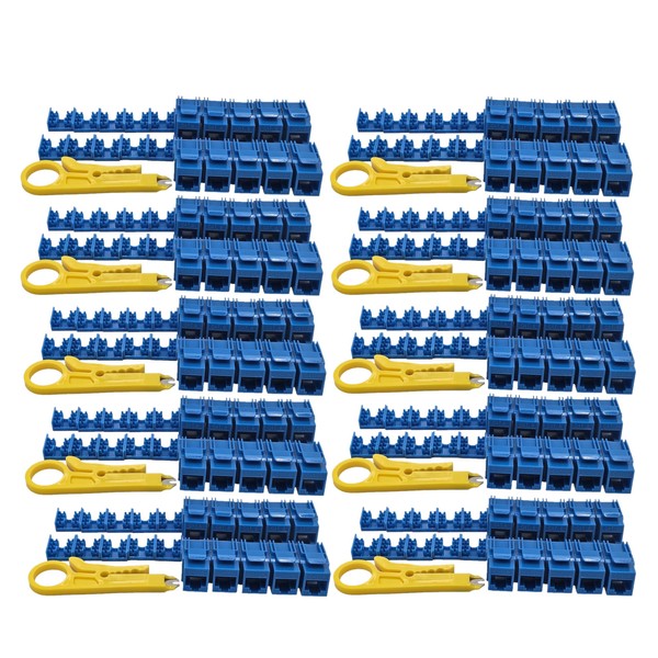 Micro Connectors, CAT 6 Unshielded Punch Down Keystone Jack with Tool (Blue, 100-Pack) (FRT-840BL100-T)