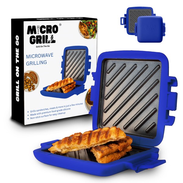 Toastie Maker, Microwave Grill, Sandwich Toaster, 3 Minute Grilled Cheese, Crispy, Panini Press, Dishwasher Safe, Office, Home, Travel & School Dorms (Blue)