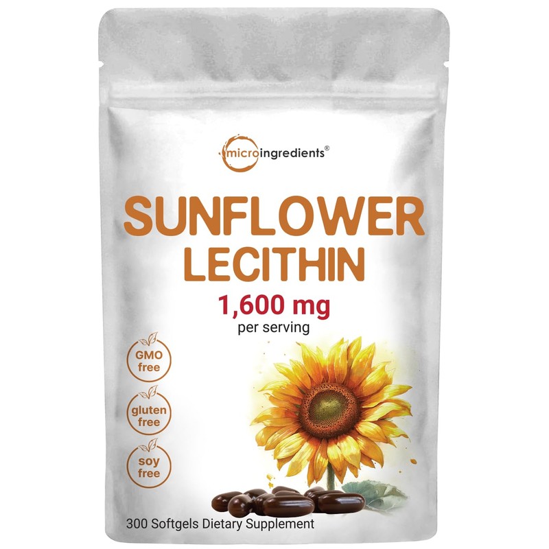 - Micro Ingredients offers extra strength Sunflower Lecithin softgels, a bulk 300 count supply with a serving size of 2 softgels, provides 1,600mg sunflower lecithin with 240mg phosphatidylcholine.