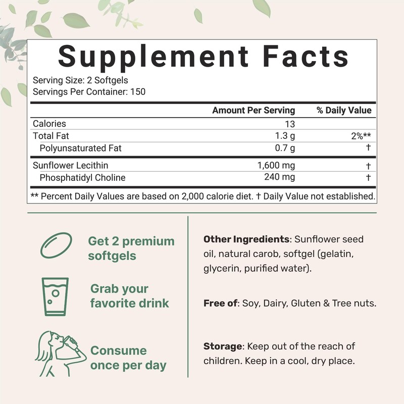 - Enjoy high concentrated cold-pressed sunflower lecithin that is sourced from sustainably farmed ingredients and offers a pure soy-free formula.