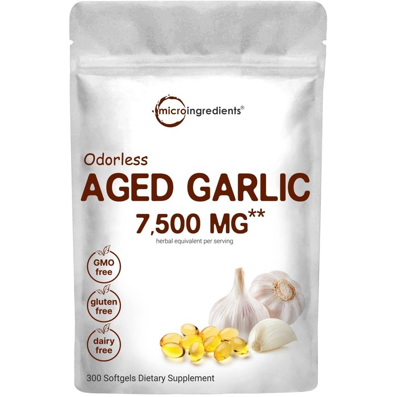 Micro Ingredients Odorless Garlic 7500mg Per Servings, 300 Softgels | 2 Years Aged Garlic Extra...