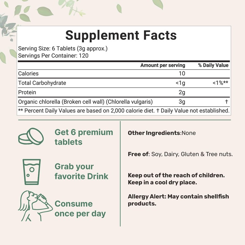 - Micro Ingredients chlorella product is made as natural as possible containing everything that fresh chlorella has to offer, made into convenient tablets. For someone who does not like eating their vegetables, but still wants to get those important nutrients in, these chlorella tablets are worth the try.