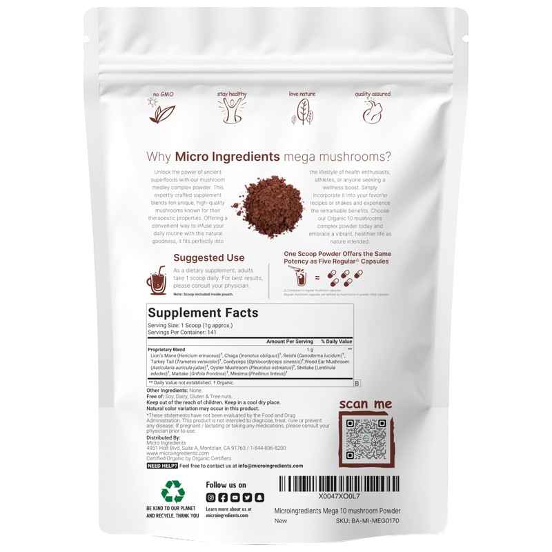 Micro Ingredients Organic Mushroom 10-in-1 Blend, 5 oz | Chaga, Lion’s Mane, Cordyceps & More | Supports Immune & Brain Function | Great for Smoothies & Daily Use | Non-GMO, Vegan Friendly
