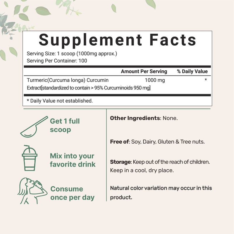 - Pure Curcumin Supplement with 95% Curcuminoids (Curcumin Turmeric Powder), 100 Grams, Non-GMO, Vegan Friendly, India Origin.