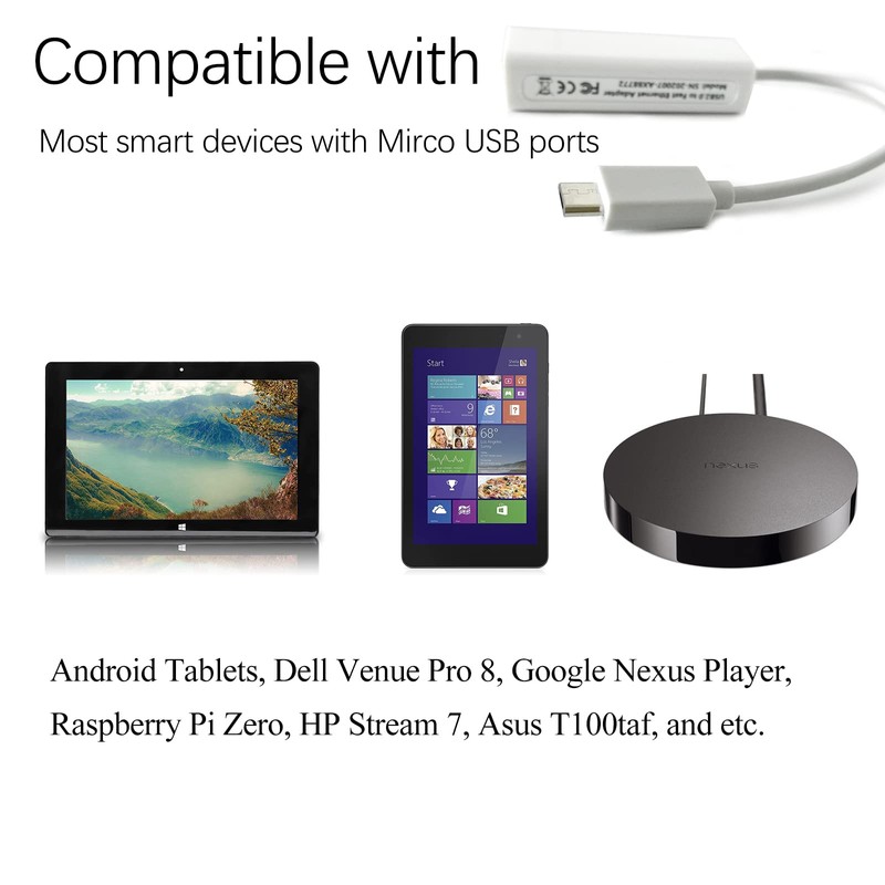 - 【Wide Compatibility】Driver-less design for Windows 8.1 / 10 (32/64 bit) or up, Mac OS 10.9 or up, and Android 4.0 or up operation system.Add 10/100M network ability to compatible device for Android Tablets, Windows Tablet computer, Google Nexus Player, Dell Venue Pro 8 Tablet, Raspberry Pi Zero, HP Stream 7, Asus T100taf and etc.