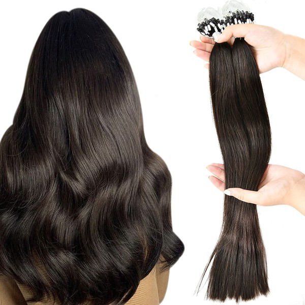 Microbead Hair Extensions 100% Human Hair 22 Inch Misslala Microlink Hair Extensions Human Hair Straight Hair Color #2 Darkest Brown Micro Loop Hair Extensions Remy Soft Hair 50 Strands 50 grams