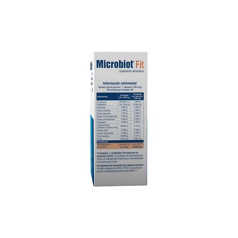 Microbiot Fit 30 Caps, Bifidobacterium Lactis Bpl-1 Sabor Sin sabor