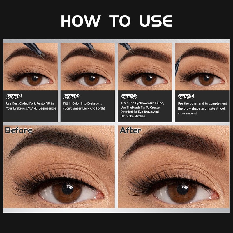 • DUAL-ENDED PROFESSIONAL DESIGN : This eye brow pencil set includes a new designed 2-tip microblading eyebrow pencil to create tiny hair-like strokes for natural finish, hair-like strokes and a single precision tip for shaping. It also comes with a dual-ended spoolie brush—one end for blending, the other for perfecting finer details. Achieve flawless brows effortlessly
