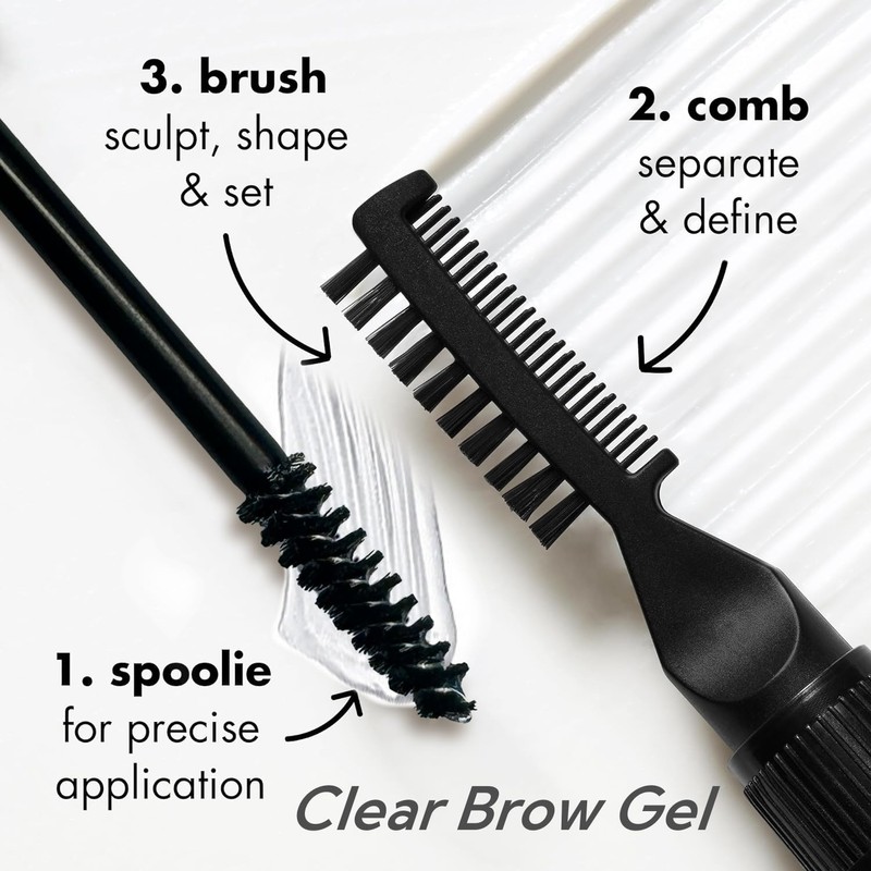 - Clear Brow Gel for Sculpted, Long-Lasting Hold: Lock your brows in place with our clear brow gel, designed to sculpt, shape, and set your brows for up to 24 hours. The non-sticky, lightweight formula provides a natural finish while keeping every hair in place—whether you’re at the gym, in the rain, or out all day. The dual-ended applicator makes blending and setting effortless.