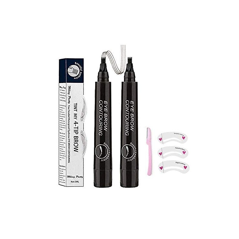 - 【FASHION EYEBROW PEN MICROBLADING】- Four points eyebrow pen fork tip creates natural looking brows effortlessly and stays on ALL day for eyes makeup, with 5 colors: Gray Brown, Red Brown, Light Brown, Black, Dark Brown. Dark colors fit for black, dark or blonde hair while light color is for lighter hair. Make a beautiful outline.