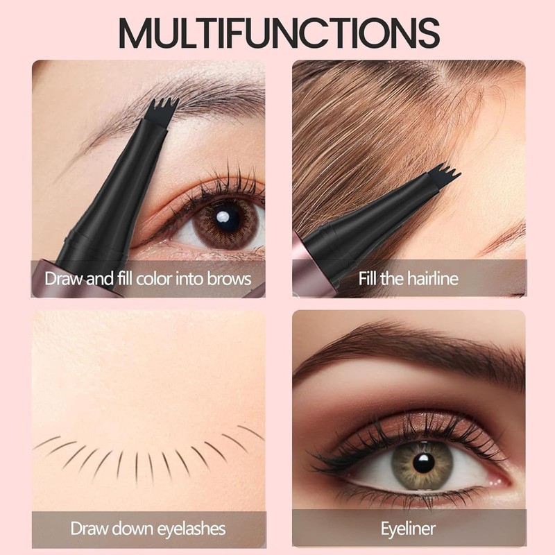 - 【Microblading 3D Eyebrow Pencil】Experience the unique design of our Eyebrow Pen, featuring an innovative four-point pen tip that allows for effortless application. Brush your eyebrows with ease, ensuring clear roots and a natural, durable look. Its innovative 4-pronged 3D fork design allows for precise Application, effortlessly creating a natural-looking effect in no time.