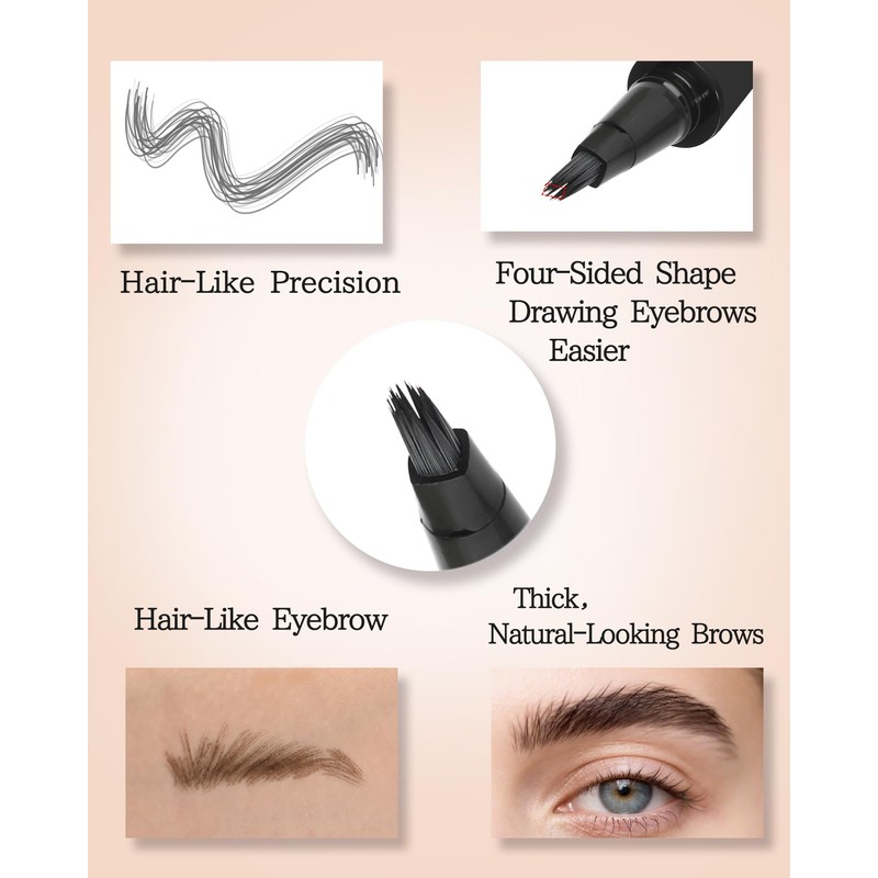 Microblading Liquid Eyebrow Pencil offers waterproof and smudge-proof performance. Featuring multiple fork tips and an angled design, this tinted brow pen provides precise application for thin hair-like strokes, ideal for shaping eyebrows, ensuring long-lasting makeup that stays put all day.