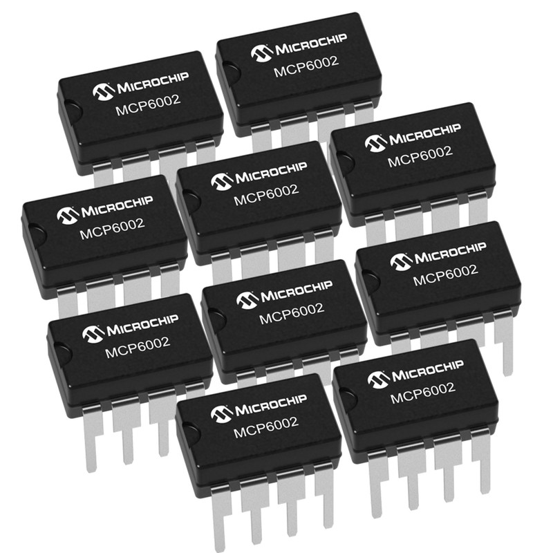 MICROCHIP MCP6002-I/P IC, OP-AMP, 1MHZ, 0.6V/ us, DIP-8 (10 pieces)