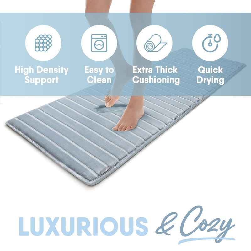 - Ultra-Soft Cushion Support - Keep your feet warm and cozy as you step out of the shower with our luxurious bath floor mat. MICRODRY SoftLux soft bath mat has extra-thick memory foam for high-density support and cushioning comfort.