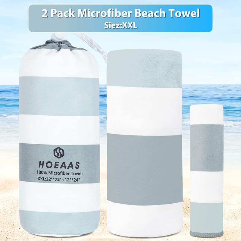 - Size & Package:Our Microfiber beach towels have 2 sizes for choose XL(30*60"+12x24"),XXL (32*72"+12x24").One package will arrive at two towels(samll and large 2 Pake).The small towels you can a hand and face towel or share with your friend.The large beach towel can wrap and dry your body.You can count on our oversized beach towel to dry off!