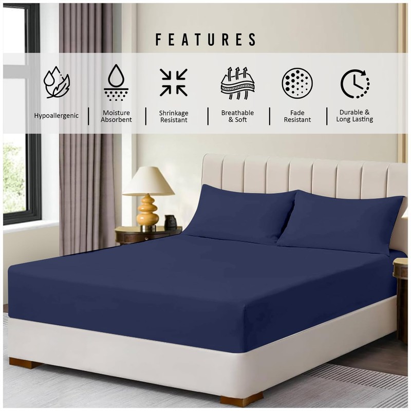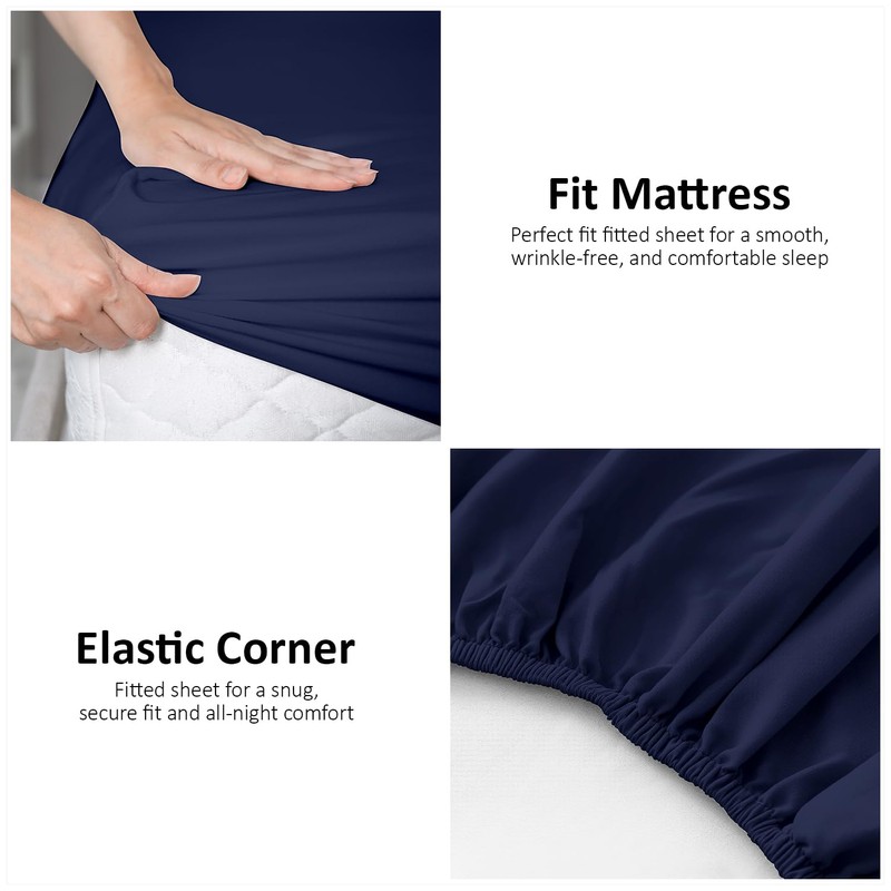 Microfiber Fitted Sheet Double - Plain Bed Sheets - Deep Pocket 10 inch (25cm) - Shrinkage, Fade & Wrinkle Resistant Bottom Sheet, Navy to Mattress (137x193 cm) - Machine Washable
