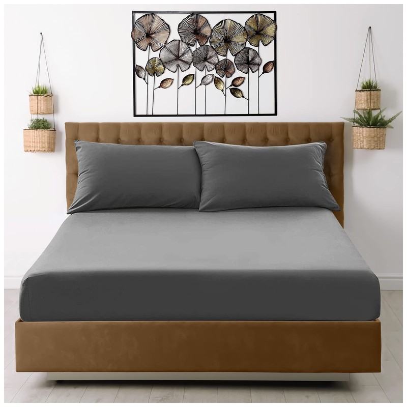 Microfiber Fitted Sheet Double - Plain Dyed Bedding Sheet - Charcoal Bottom Bed Sheet