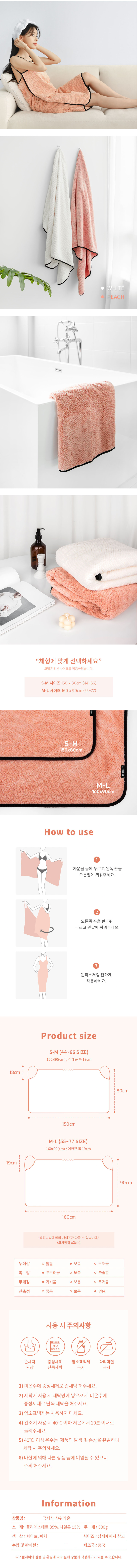 Microfiber Peach Shower Robe - Bath & Hotel Towel (Summer, S) M