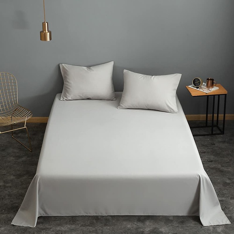 Microfiber Queen Bedding Flat Sheet, Ultra Soft and Wrinkle, Fade, Stain Resistant Top Sheet (Gray, Twin)