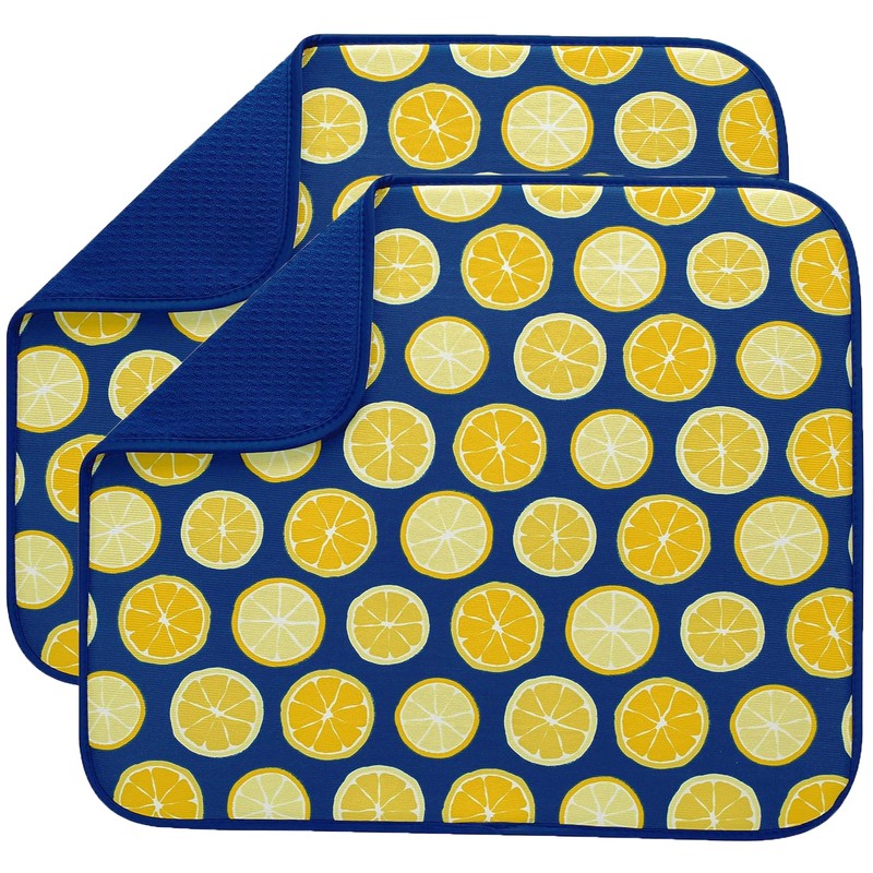 Microfibre Dish Drying Mats for Kitchen Super Absorbent Dish Drainer Mat for Kitchen Countertop Tabletop 40cm x 46 cm 2 Pack Lemons