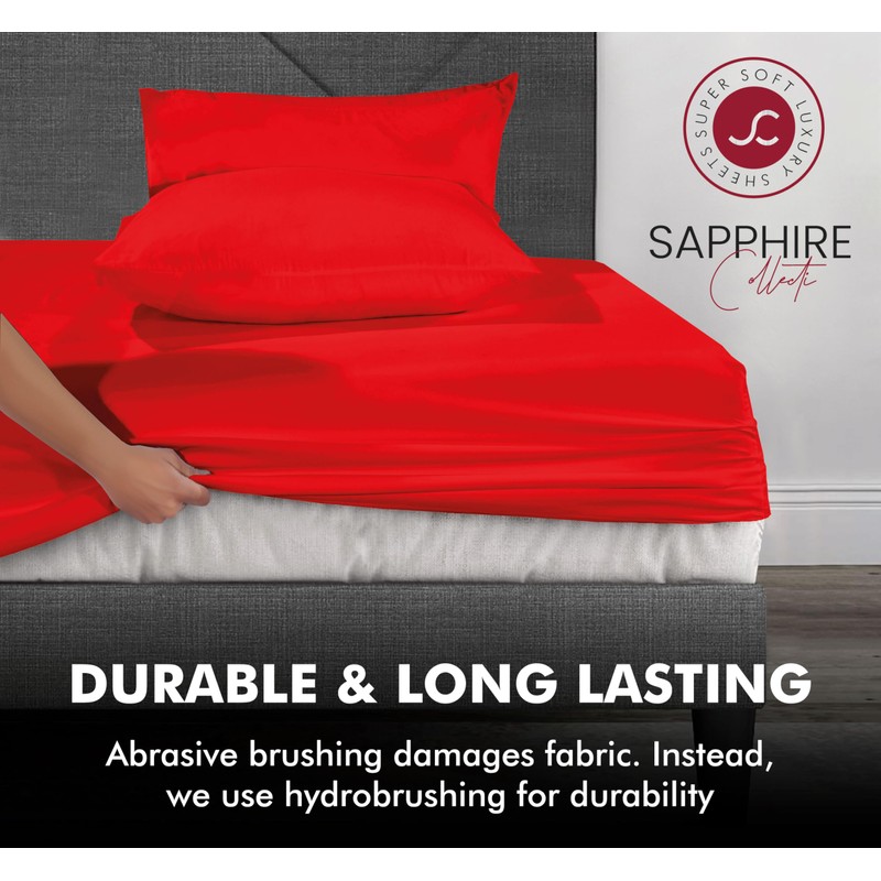 Microfibre Fitted Sheet Extra Deep Pocket 12 inch (30cm) Bedding Soft Brushed Fabric Shrinkage and Fade Resistant Non Iron Bottom Fitted Sheet (Red, Double)