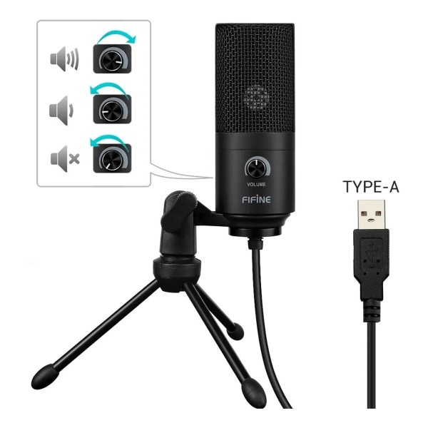 Micrófono Fifine K669B USB condensador cardioide negro. Sonido profesional, ideal para streaming, podcast y grabaciones. Plug & play. 🎧🎙️🔥
