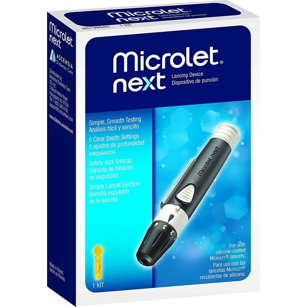 Microlet Next Lancing Device Kit 5 Clear Depth Settings with Safety Lock Endcap