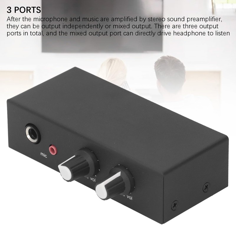 - 3 PORTS: After the microphone and music are amplified by stereo sound preamplifier, they can be output independently or mixed output. There are three output ports in total, and the mixed output port can directly drive headphone to listen