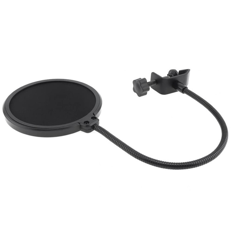 Microphone Pop Filter Cover for Mic Windscreen Metal Isolation Shield for Vocal Recording Black - axGear